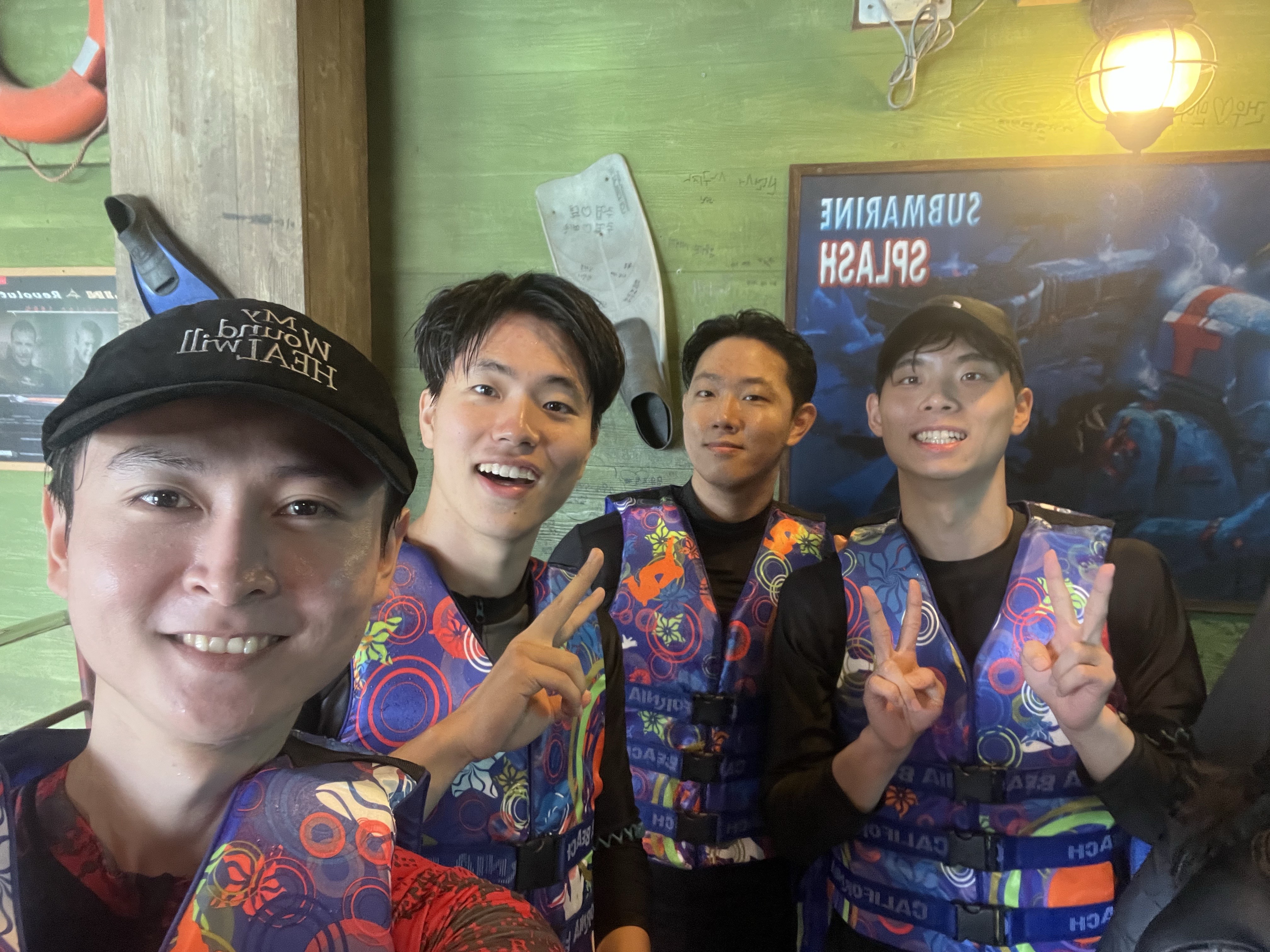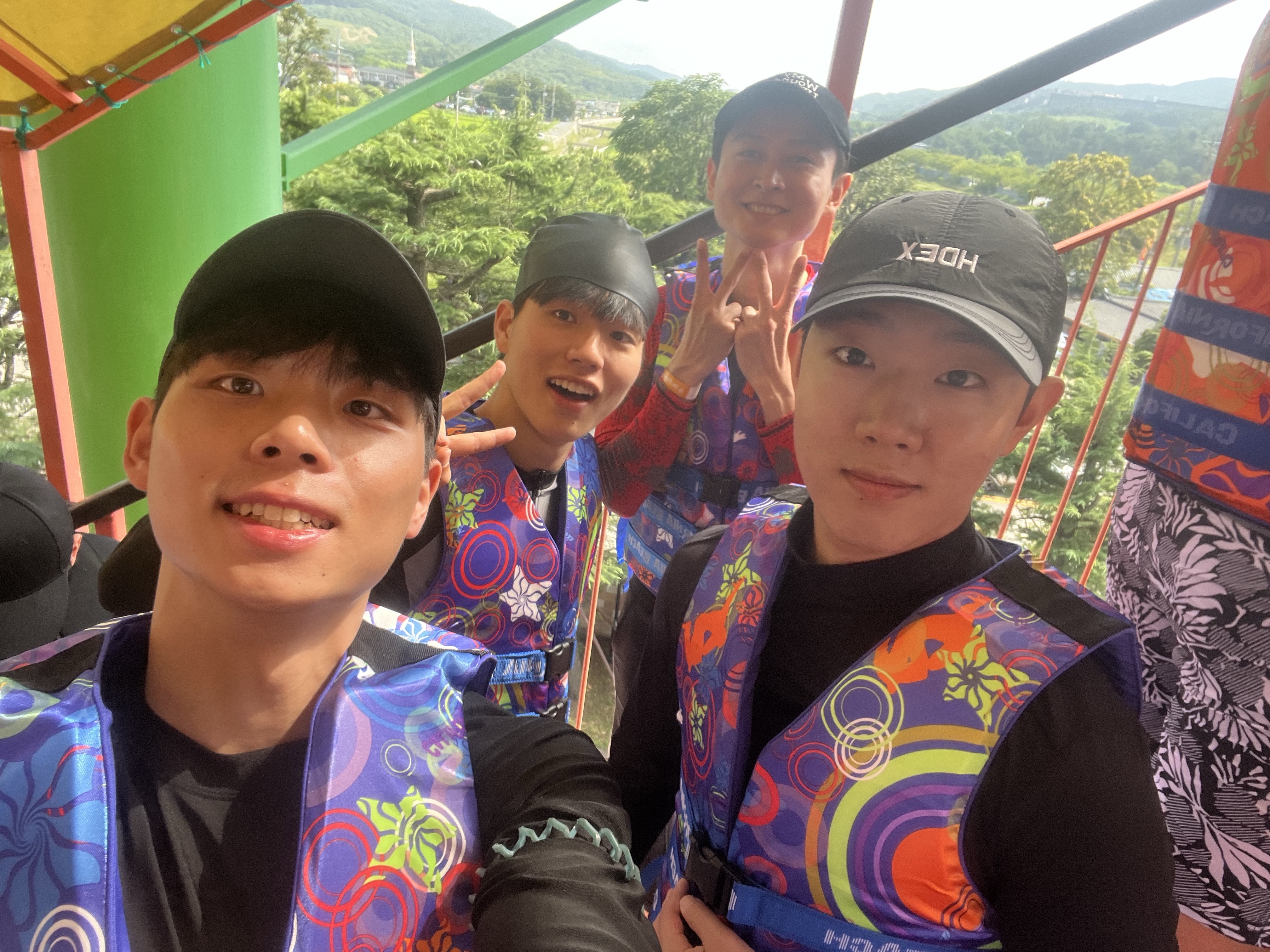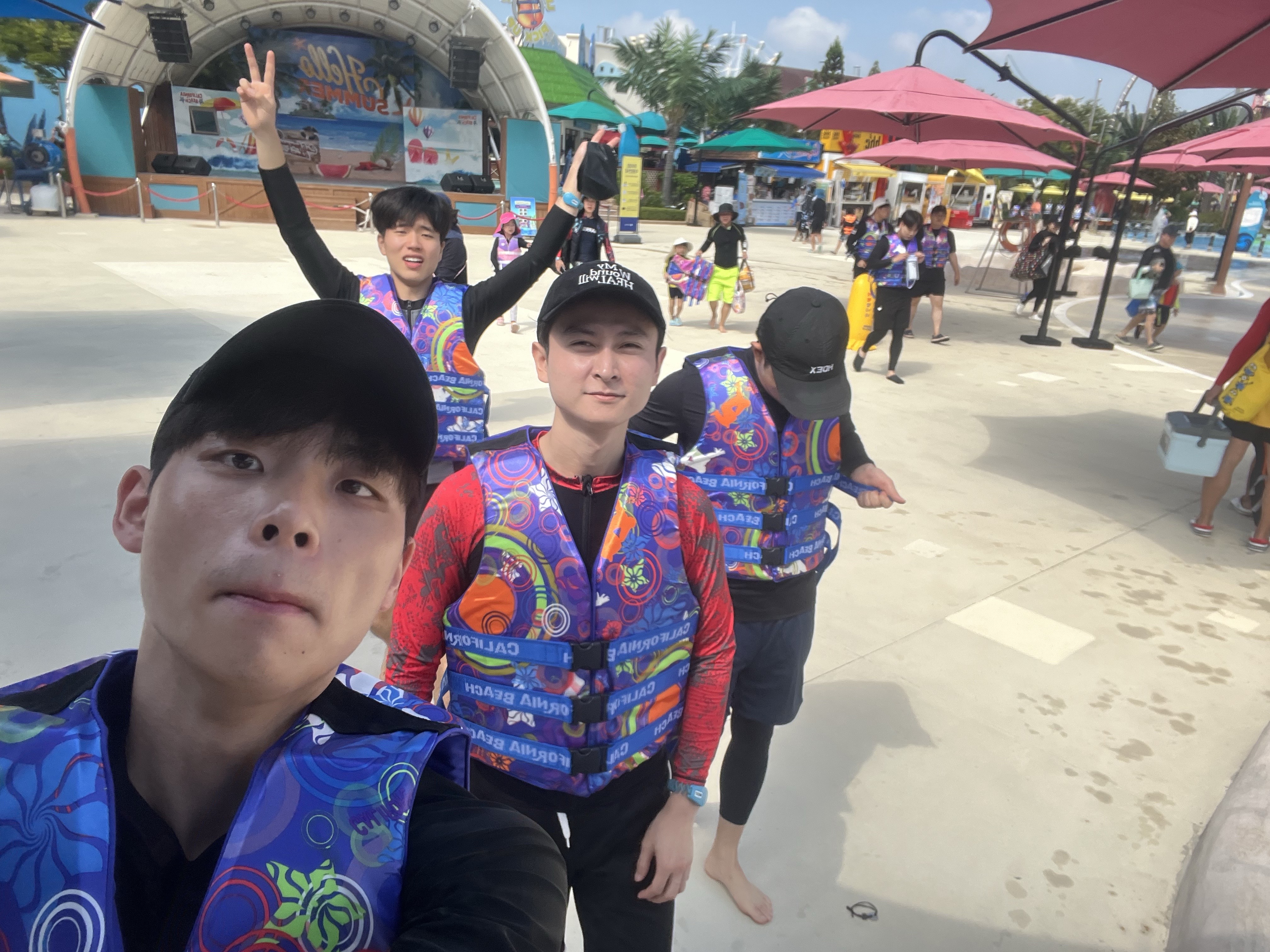 너무나 기대 했던 수영장 이 사진을 보자마자 수영을 했던 기억이 난다. 너무나 행복하고 즐거운 시간이 었다. 경주 비치에 도착하여 구명 조끼를 채우고 과일을 먹으면서 대기하고 있었다.