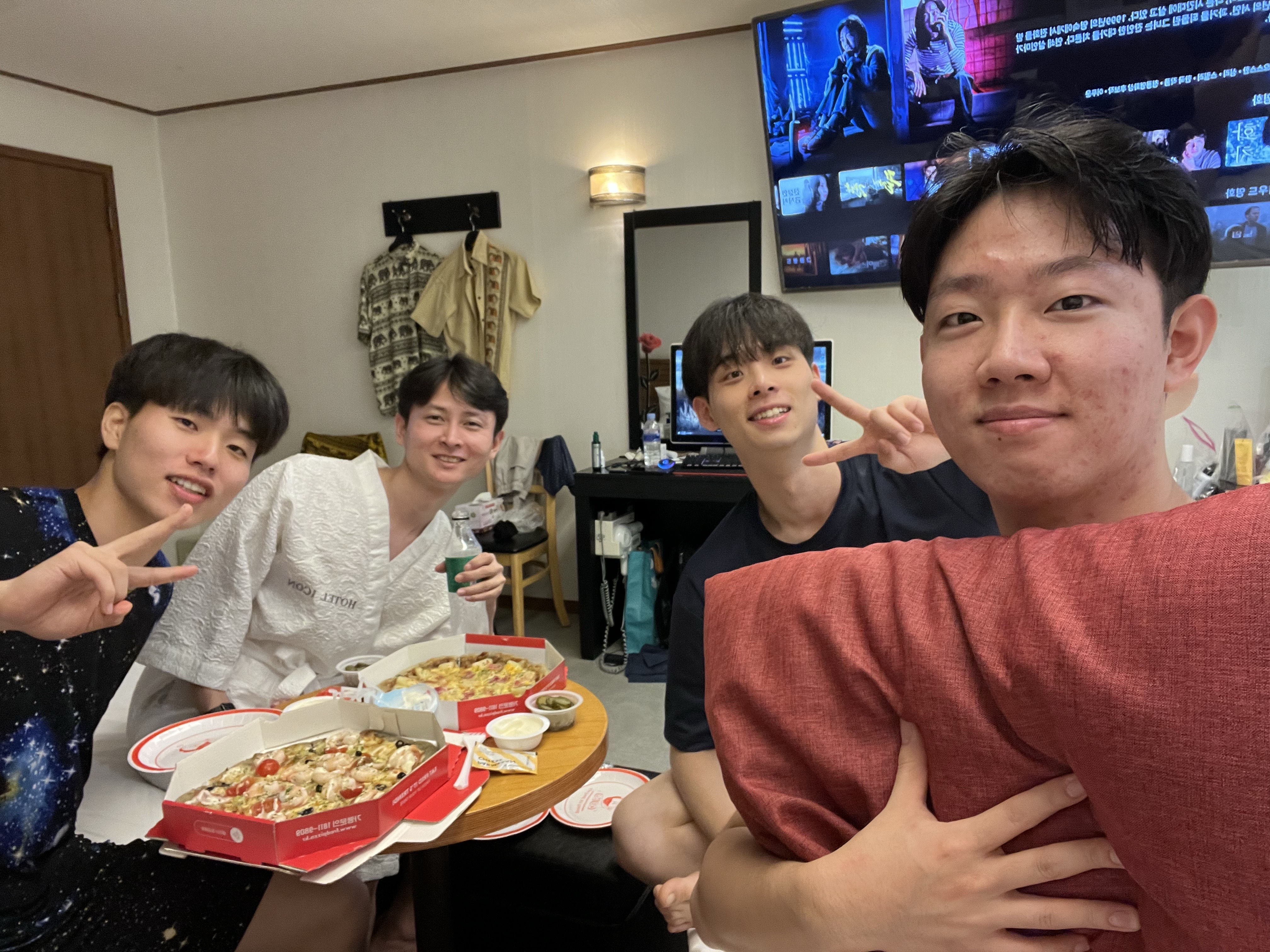 첫방문 경주 저녁 늦은 밤에 할머니를 보내주고 저녁 숙소에 도착하여 피자를 먹습니다. ~